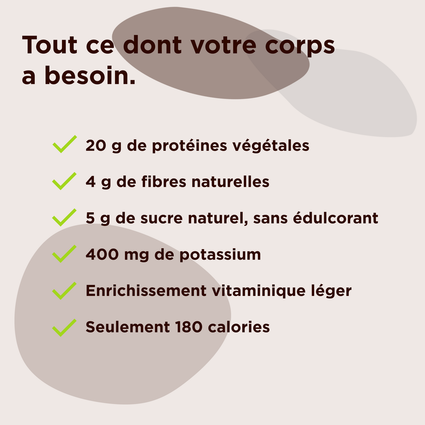 Juste l’énergie qu’il faut, provenant d’ingrédients réels, pour nourrir le corps sans surcharge artificielle.